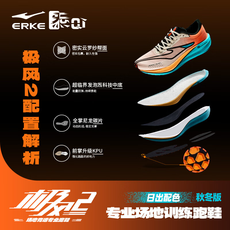 鸿星尔克男鞋极风2秋季2025新款运动鞋透气中考体测训练跑步鞋子