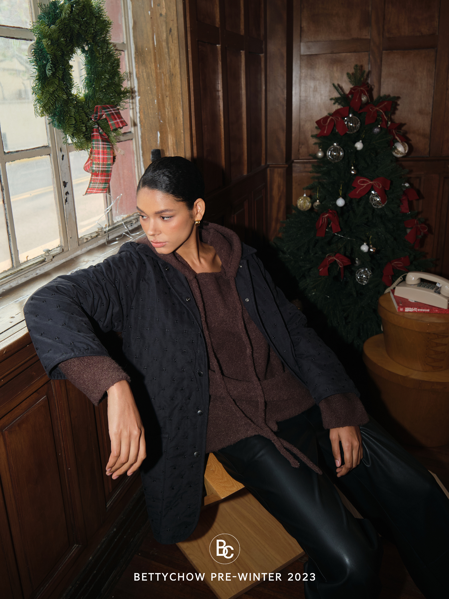 Betty私服 中古H刺绣黑棉服中长款秋冬复古欧式外套防风时尚大衣