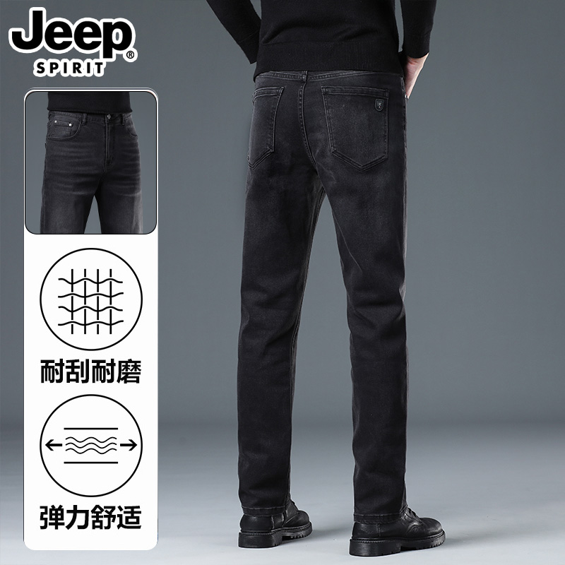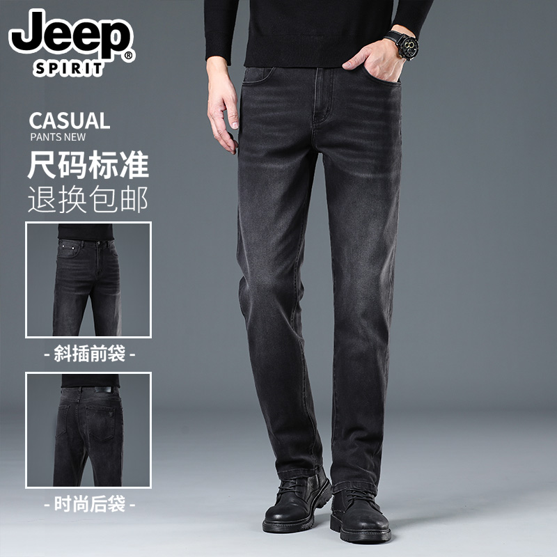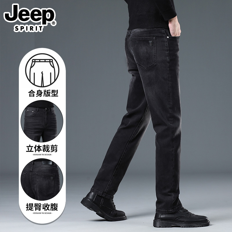 吉普秋季新款高端潮流牛仔裤男士修身直筒商务休闲弹力水洗长裤子