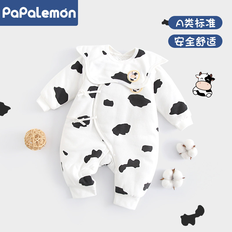 新生儿宝宝连体衣冬季夹棉保暖衣服婴儿纯棉圆领加厚哈衣卡通爬服