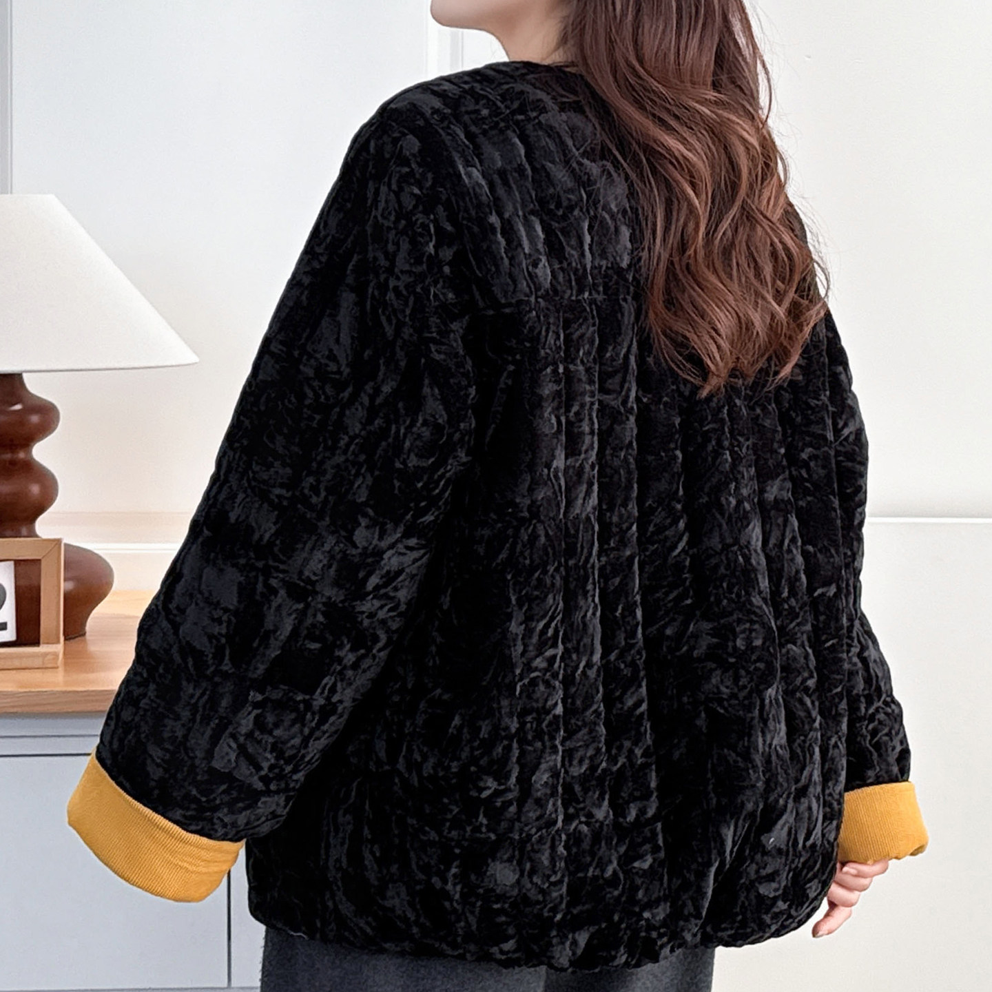 2025时尚金丝绒棉服胖mm百搭不臃肿减龄棉衣遮肚子显瘦大码冬装潮