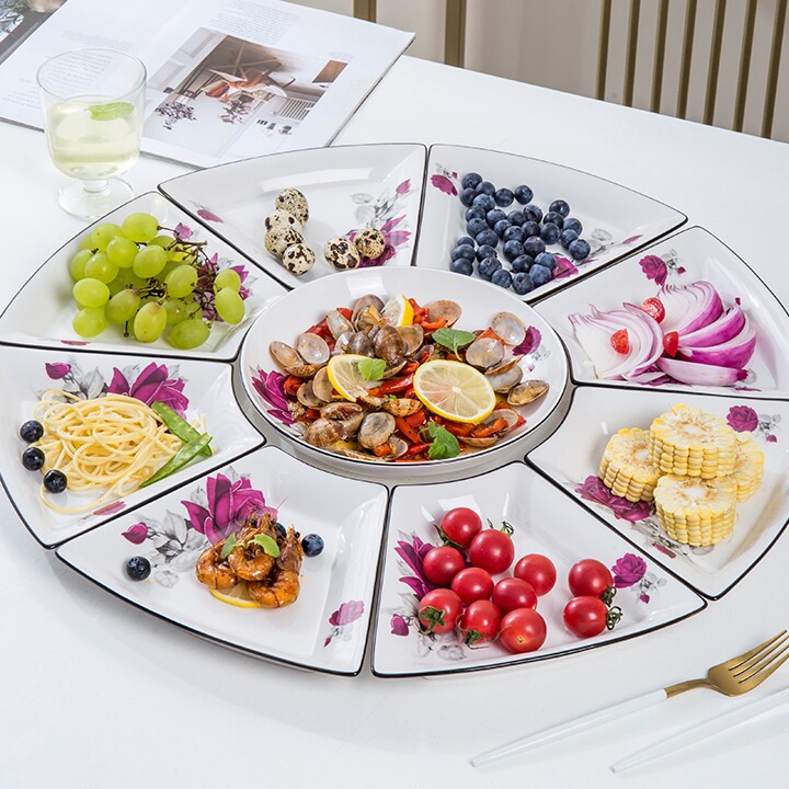 创意家用陶瓷扇形拼盘组合套装
