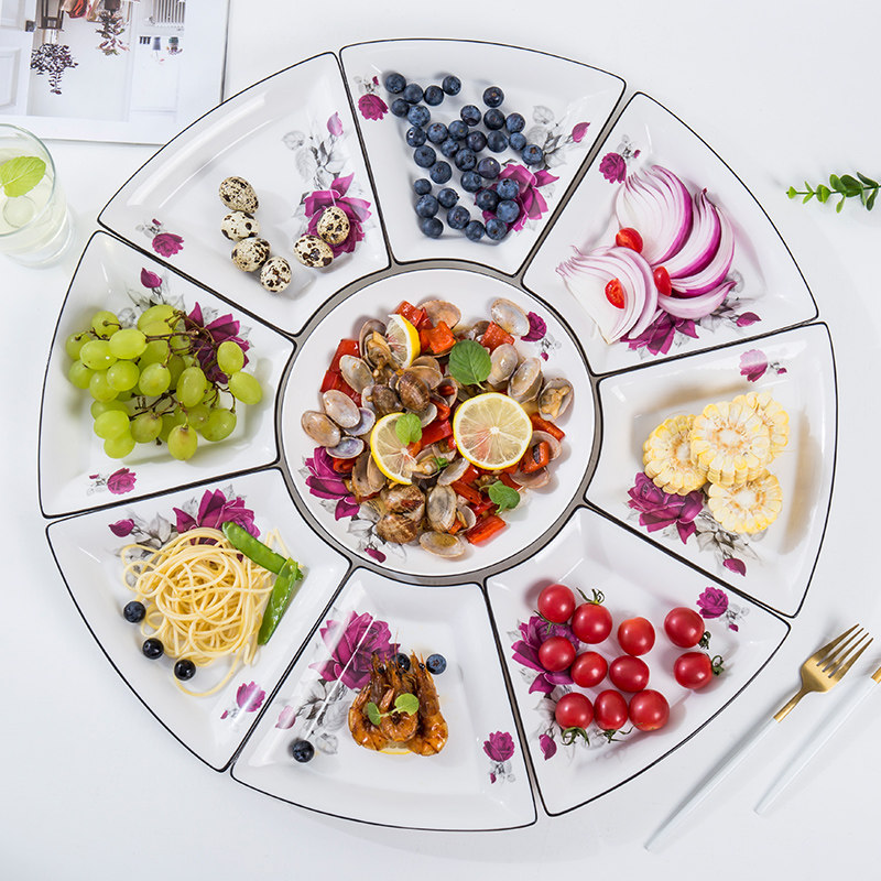 创意火锅家用陶瓷大团圆拼盘创意圆桌餐盘扇形分格盘水果盘圆桌盘