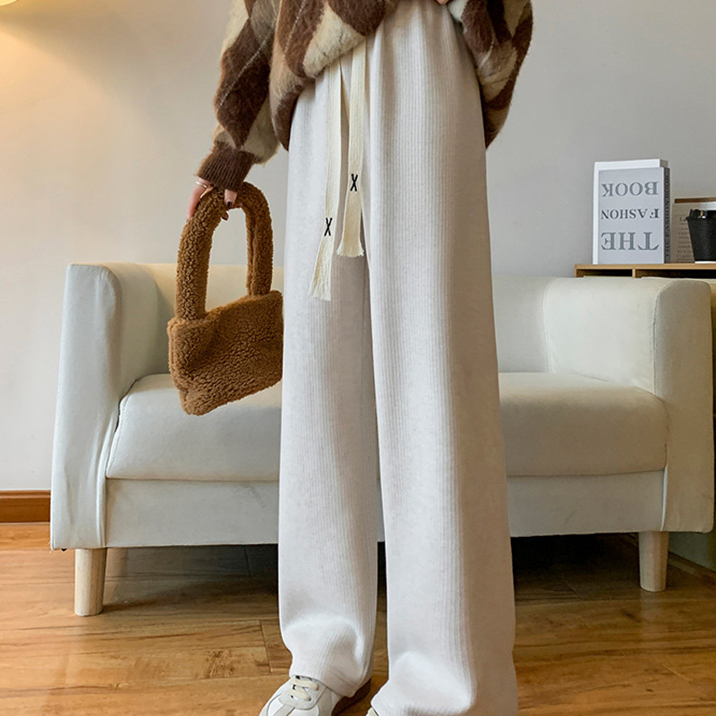 one more2025年秋季新款休闲裤女高腰显瘦百搭窄版垂感阔腿长裤子