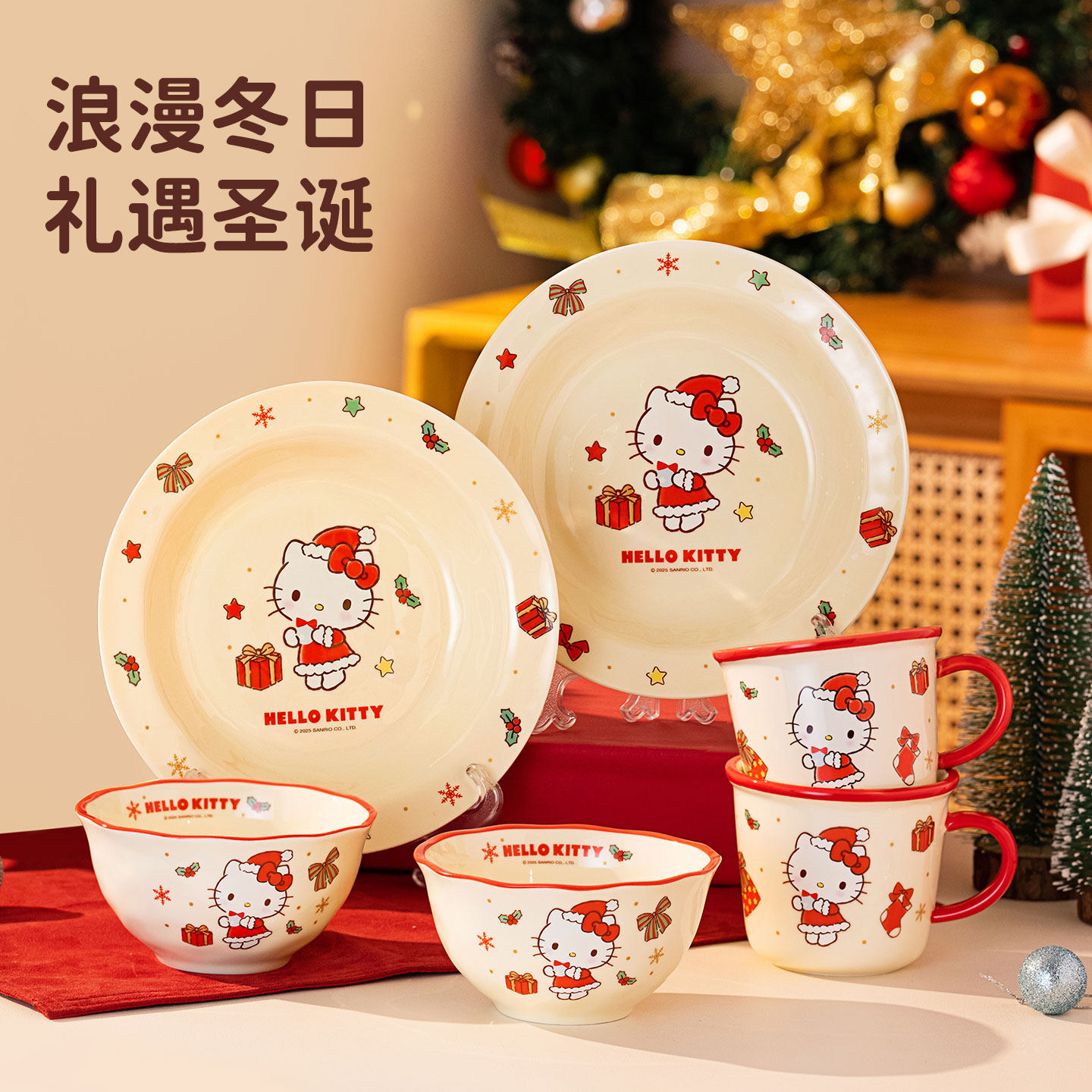 HelloKitty新年餐具可爱饭碗家用陶瓷碗盘组合套装送女生生日礼物