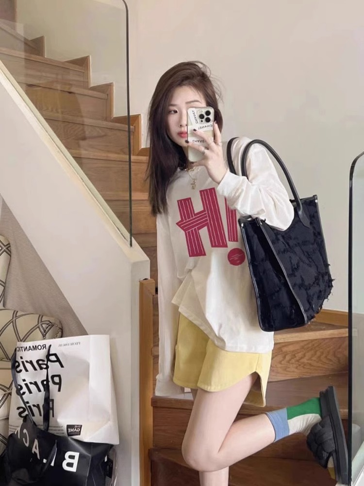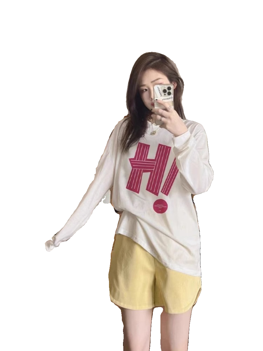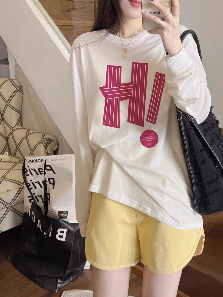 100%纯棉白色字母印花长袖T恤女2025新款春秋宽松百搭打底衫上衣