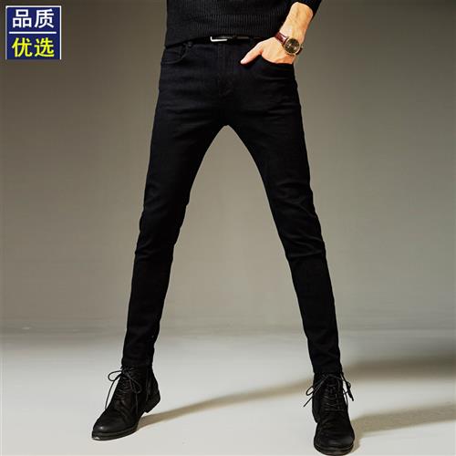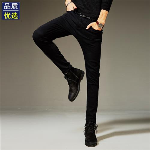 春秋黑色牛仔裤男士修身小脚裤子男韩版潮流九分裤破洞春秋长裤子