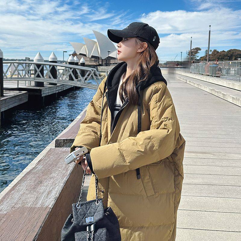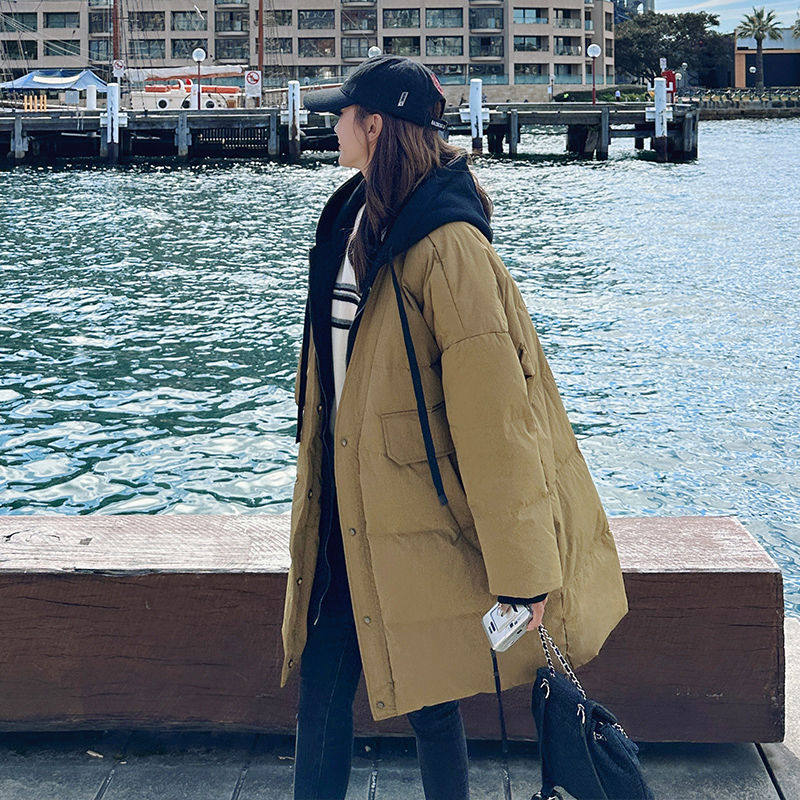 胖mm撞色设计感连帽中长款棉服