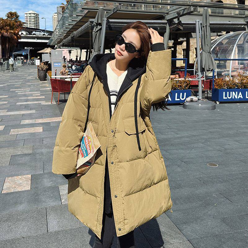2-300斤大码胖mm撞色设计感连帽棉服冬季中长款加厚保暖棉衣外套
