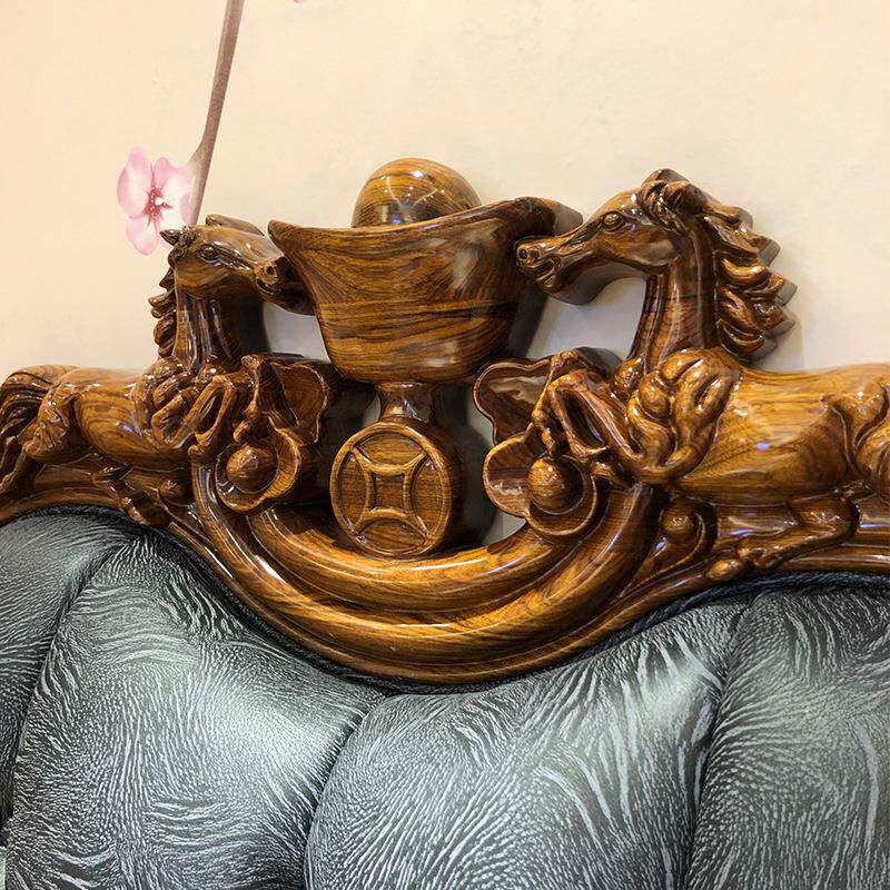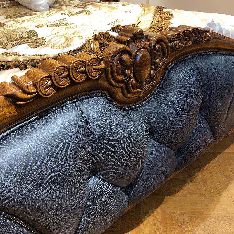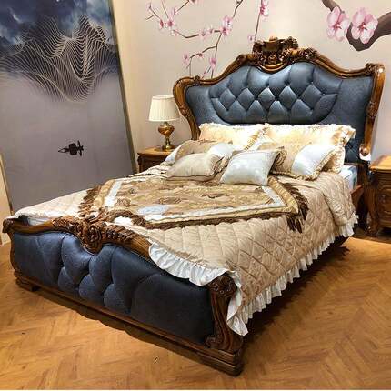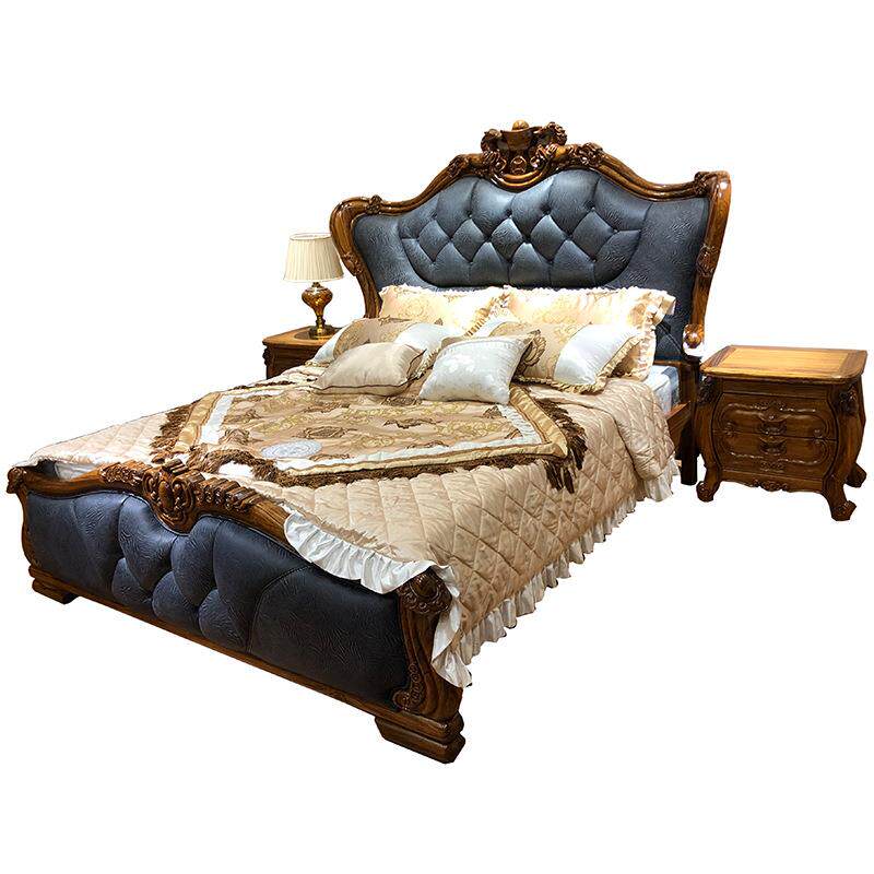 乌金木实木床美式床双人真皮雕花床欧式大床卧室套房成套原木家具