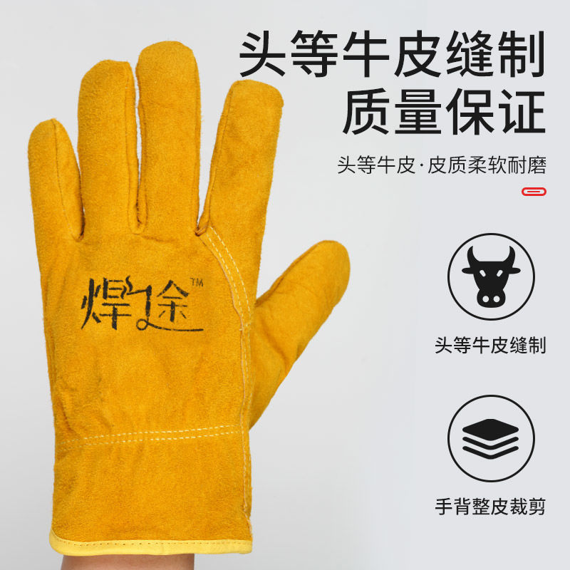 加棉电焊工手套防烫专用耐磨防火线软牛皮耐高温劳保工作专业保暖