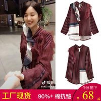 古力娜扎明星同款酒红条纹法式轻奢不规则衬衫显瘦气质雪纺上衣女