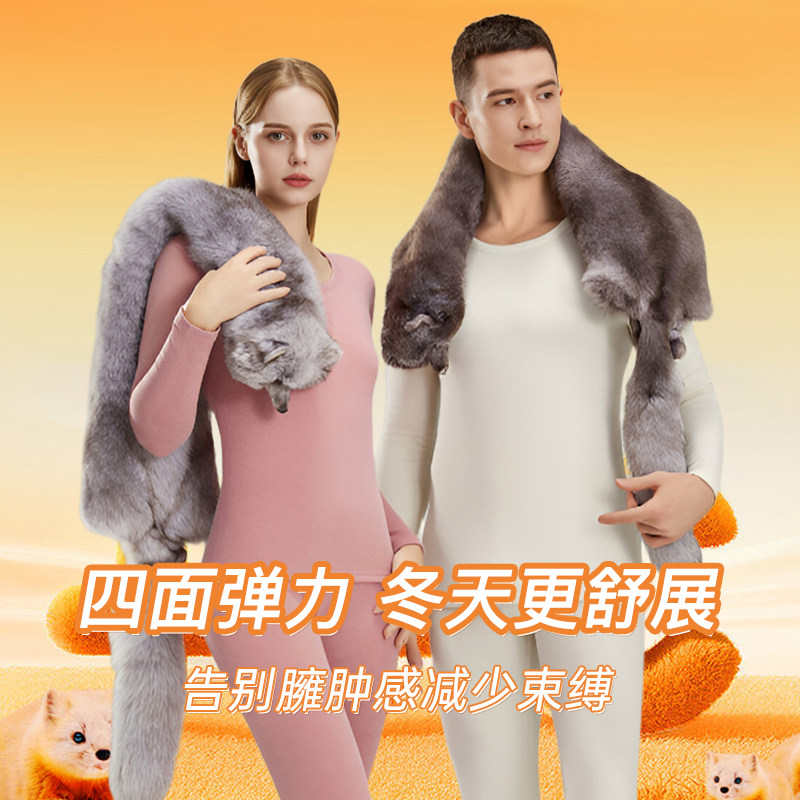 猫人女士莫代尔保暖内衣秋衣秋裤加绒加厚发热打底衫秋冬内搭套装