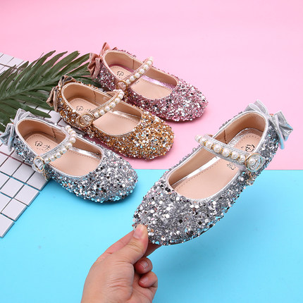亮片女童单鞋公主鞋2025春夏新款水钻女孩水晶鞋表演闪亮软跳舞鞋