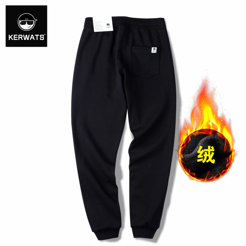 KERWATS卫裤男加绒加厚纯色宽松200斤青年束脚休闲裤子小脚哈伦裤