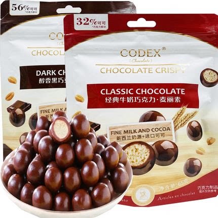 新品特价 麦丽素醇香黑巧克力/经典牛奶巧克力65g 休闲网红小零食