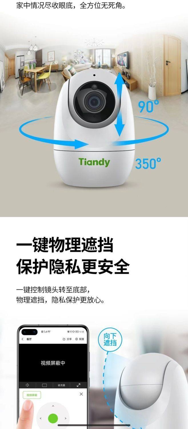 天地伟业天鹅蛋TC-H132N无线对讲人形识别报警摄像头室内摇头机