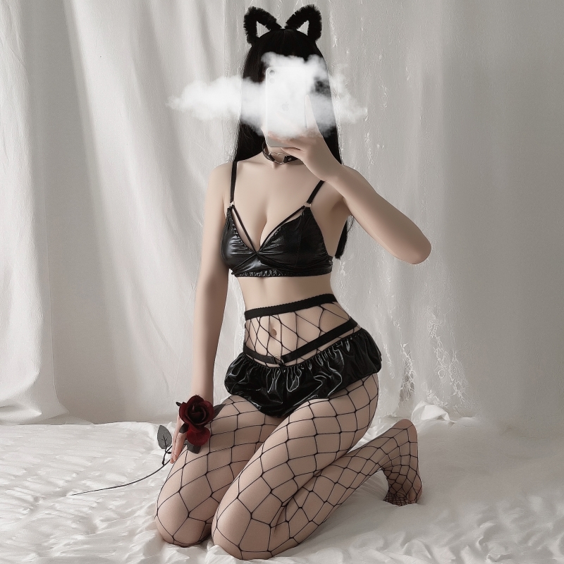 激情性感丁字裤文胸罩内衣套装纯欲皮尤多色三点式pu漆皮t裤奶罩
