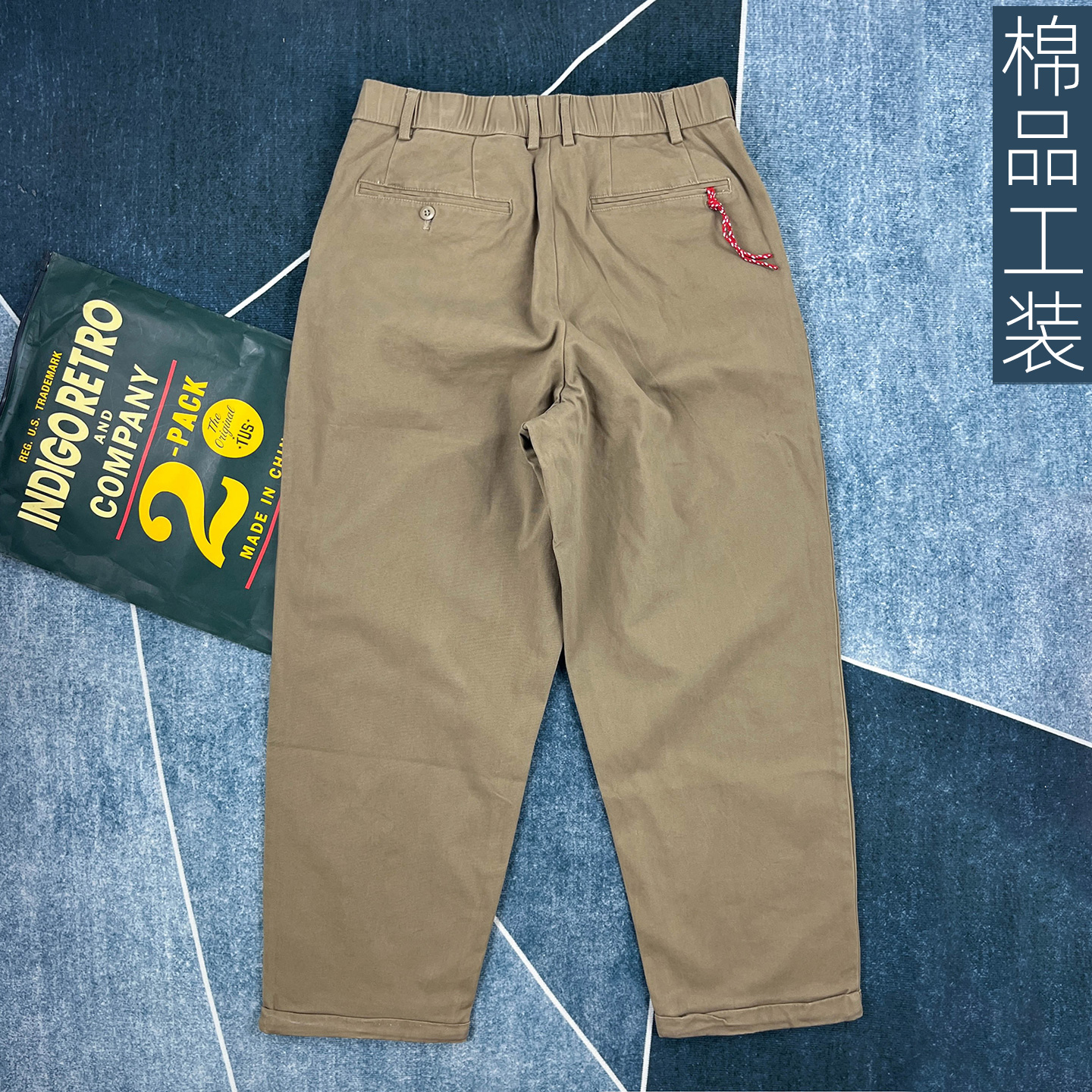 日系复古纯棉休闲裤男秋季美式复古宽松直筒卡其长裤纯色百搭