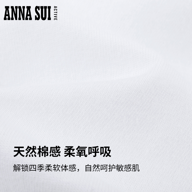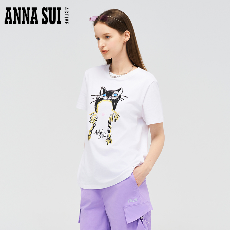 ANNA SUI安娜苏运动 明星同款复古猫耳印花圆领慵懒短袖T恤休闲
