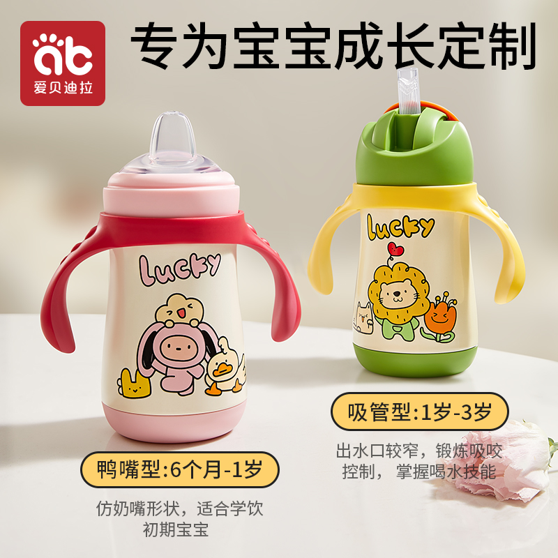 儿童保温杯婴儿学饮一岁6个月以上鸭嘴宝宝吸管水杯外出喝水杯子