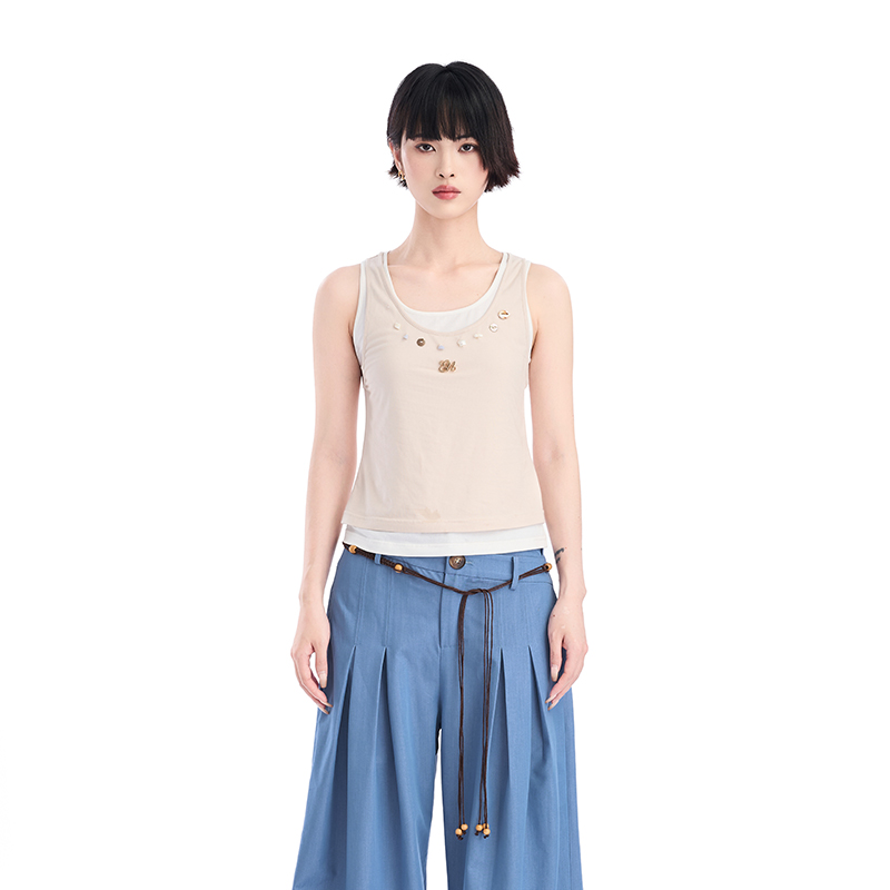 Eimismosol2025夏季新款时尚套装女贝壳开衫两件套镂空针织背心