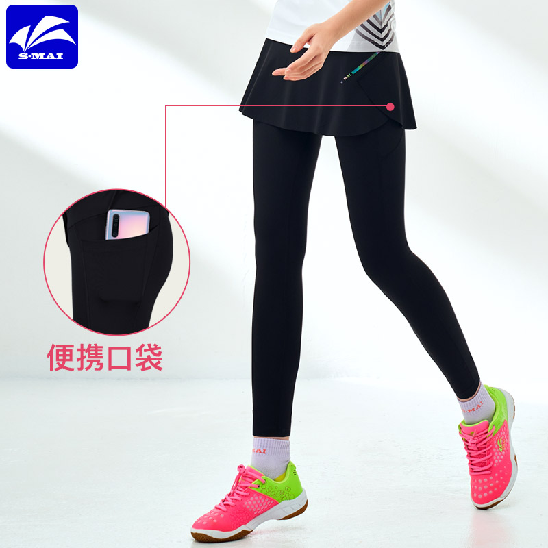 速迈秋冬新款羽毛球服运动跑步假两件速干透气长裙裤女收腹显瘦