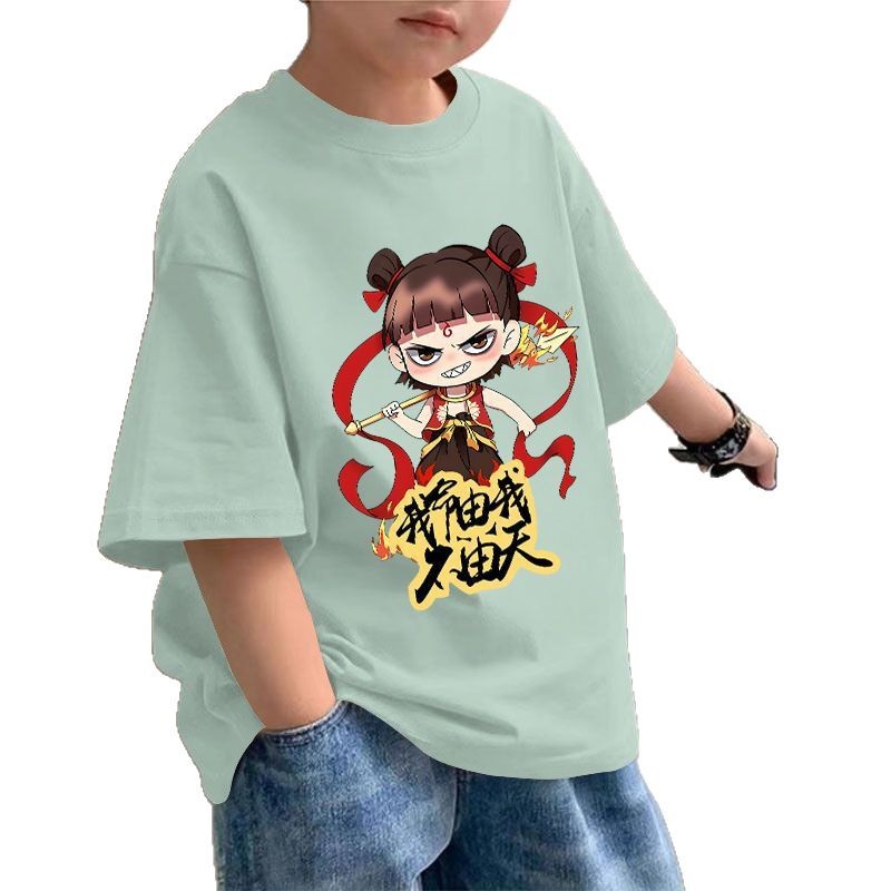 哪吒儿童短袖T恤男童夏季款中国风男生纯棉童装白色男孩宽松上衣