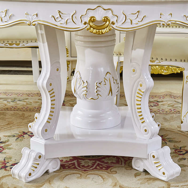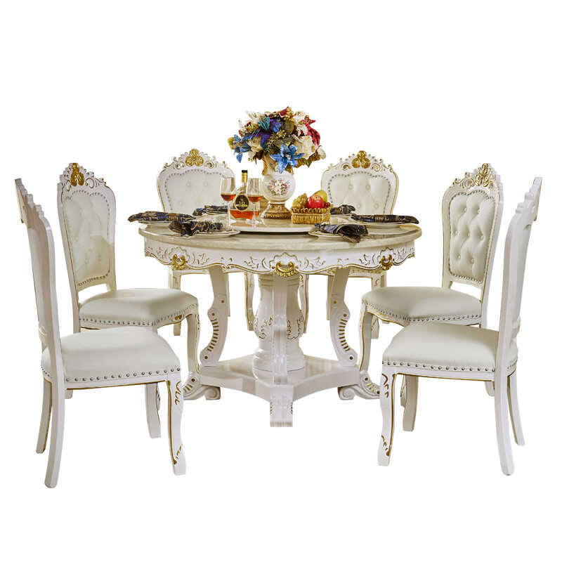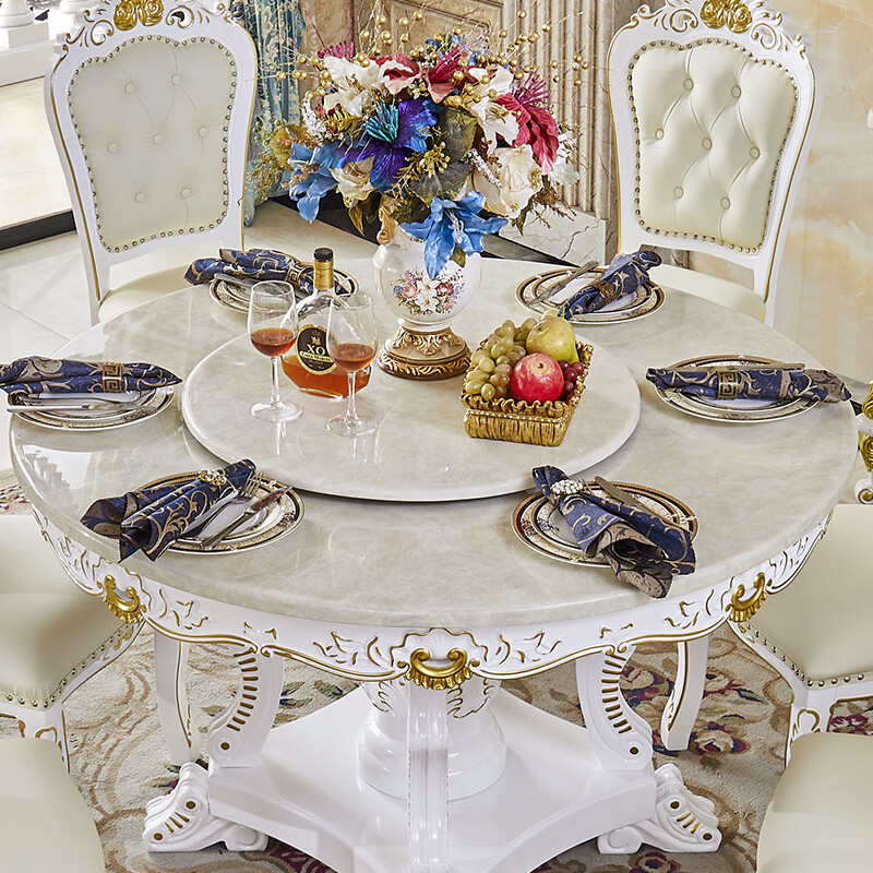 欧式圆餐桌椅组合法式实木大理石圆形雕花餐厅带转盘吃饭桌子