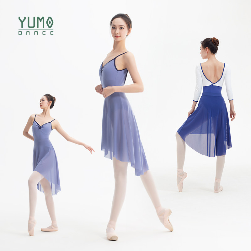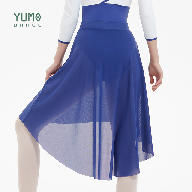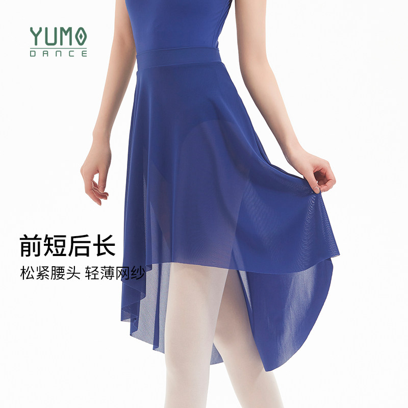 YUMO成人芭蕾舞纱裙前短后长练功服舞蹈裙仙气一片式网纱半身裙