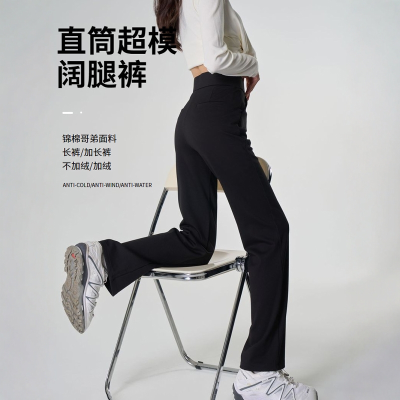 高定!窄版超模直筒阔腿裤锦棉显瘦垂感拖地直筒休闲西装裤女春新