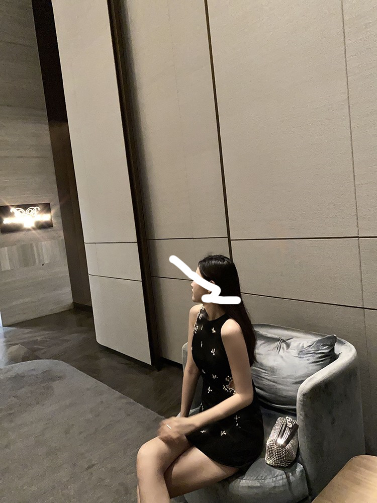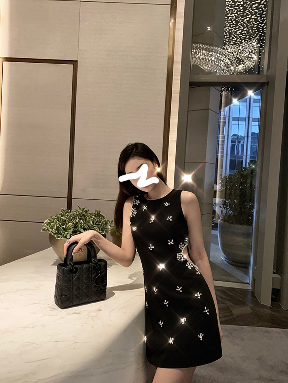 大码胖妹妹高端定制气质名媛露腰水钻钉珠无袖小A摆小黑裙连衣裙