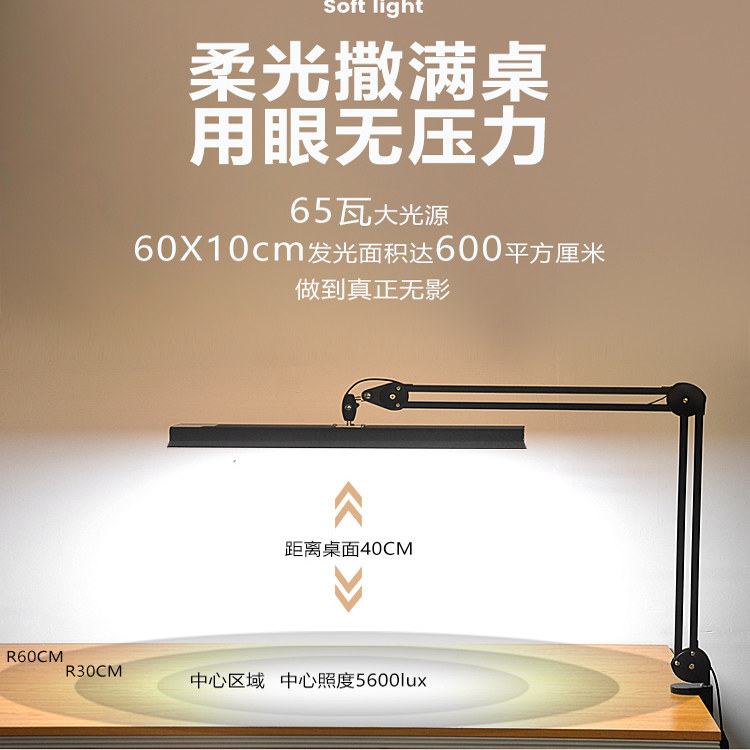 长臂专业级绘画设计模型摄影全光谱RG0LED学习工作护眼夹子款台灯