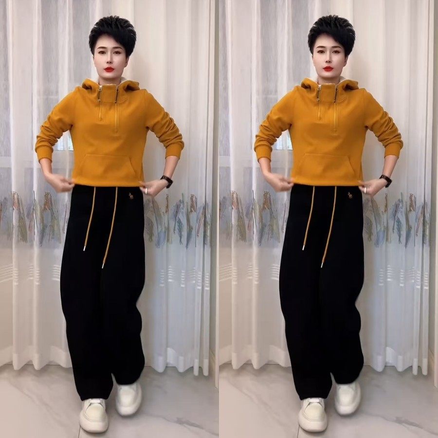 时尚休闲双拉链连帽加绒上衣秋冬新款加厚保暖卫衣百搭洋气打底衫