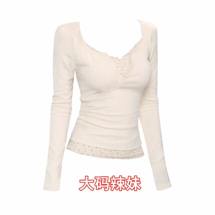 长袖上衣女春秋美式纯欲辣妹新款碎花假两件修身显瘦套头T恤大码