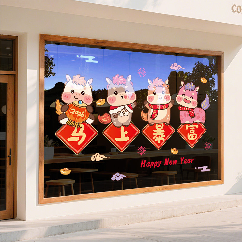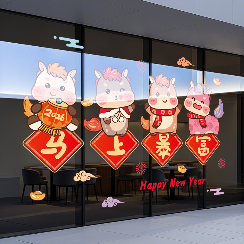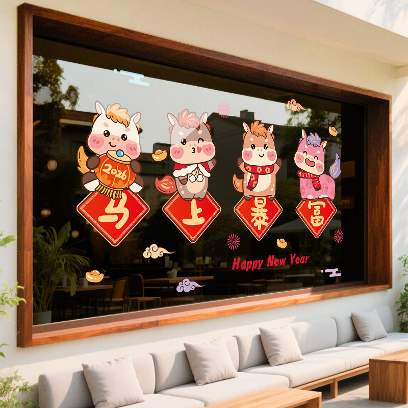 新年装饰窗花马年玻璃贴纸2026窗贴幼儿园布置春节静电贴过年门贴