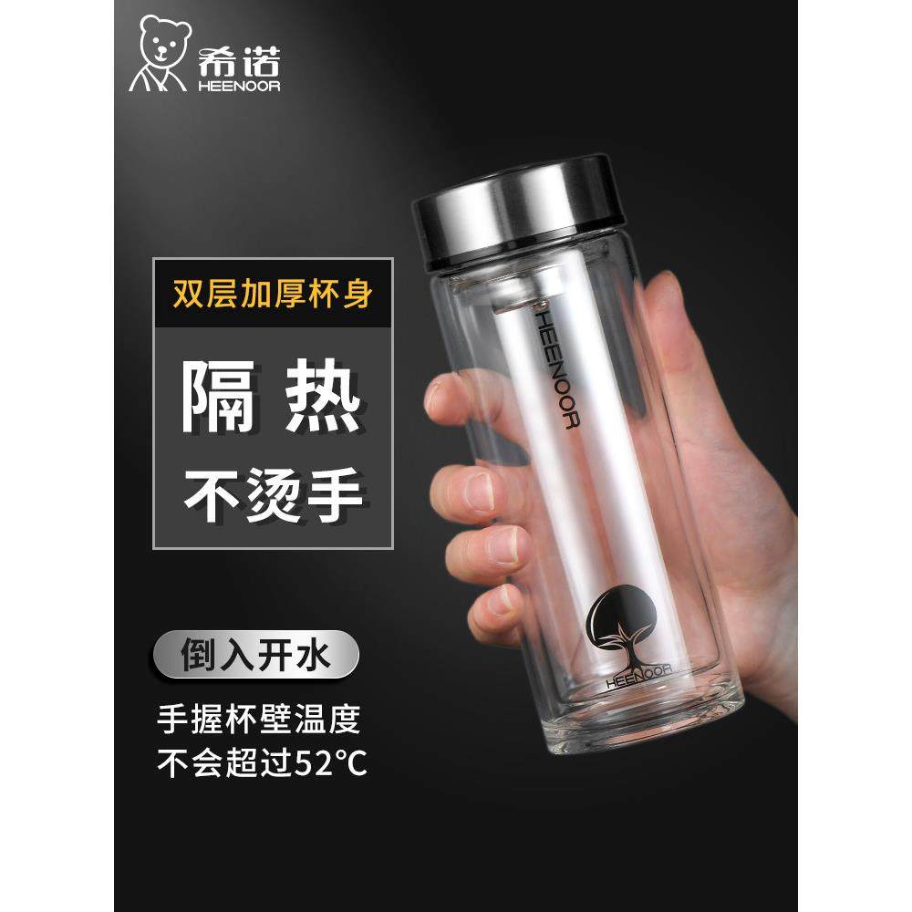 希诺双层玻璃杯办公室泡茶杯礼盒男士商务水杯耐高温杯子家用喝水