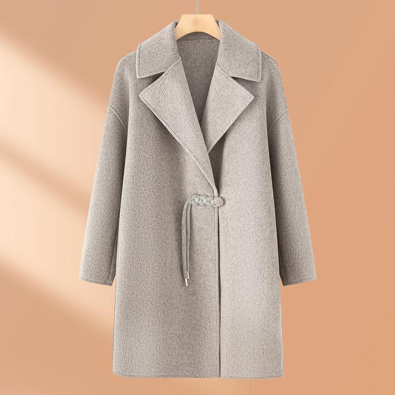 双面呢羊绒大衣中长款纯色毛呢外套2025春秋新款大码女装中式上衣