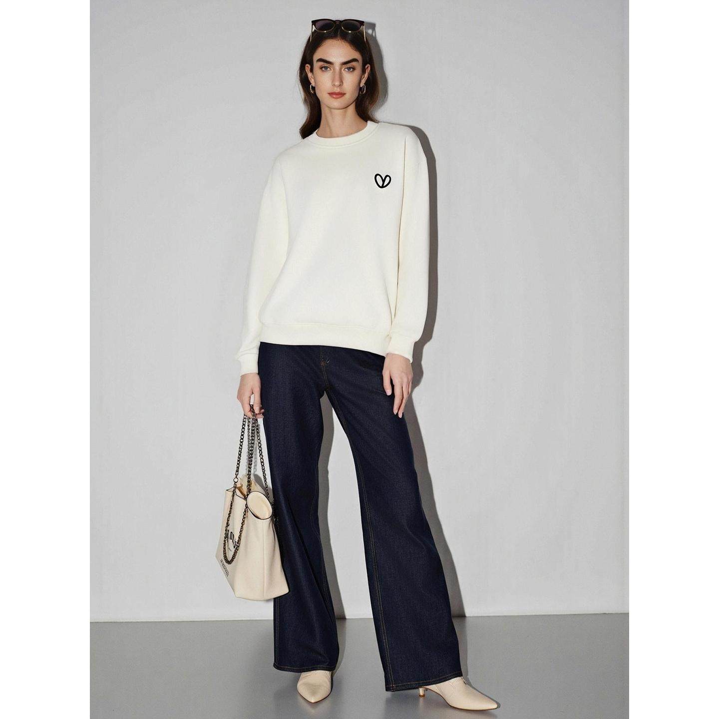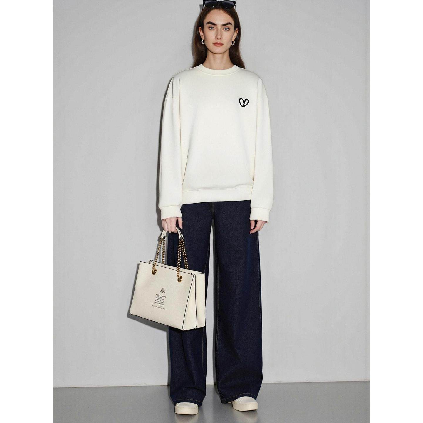 Basic House/百家好白色圆领加绒卫衣女2025冬季新款宽松套头上衣
