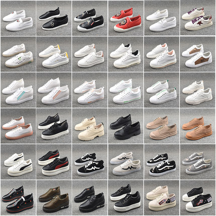 库存捡漏女士平底板鞋时尚百搭透气休闲皮鞋小白鞋内增高鞋女单鞋