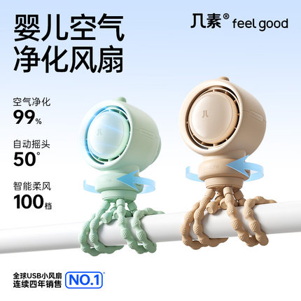 几素高速节能婴儿车小风扇八爪鱼无叶可摇头空气净化充电夹子便携式户外桌面儿童宝宝手推车婴儿床防夹手轻音