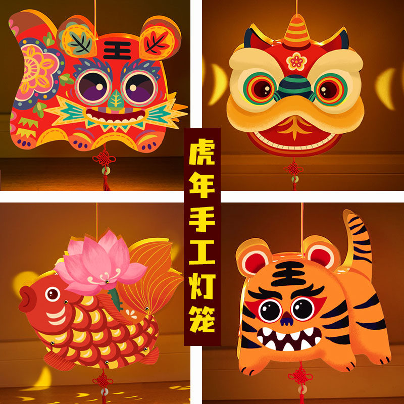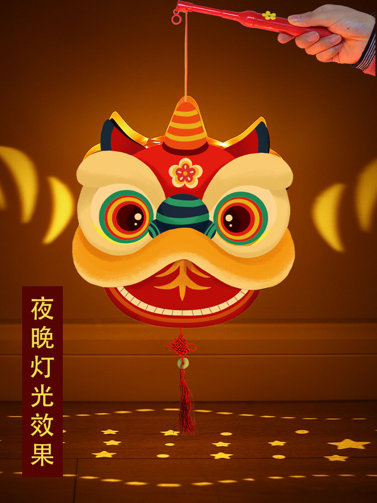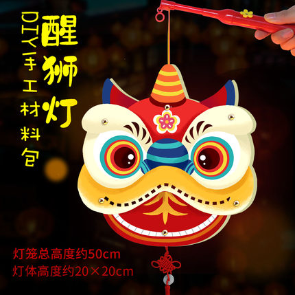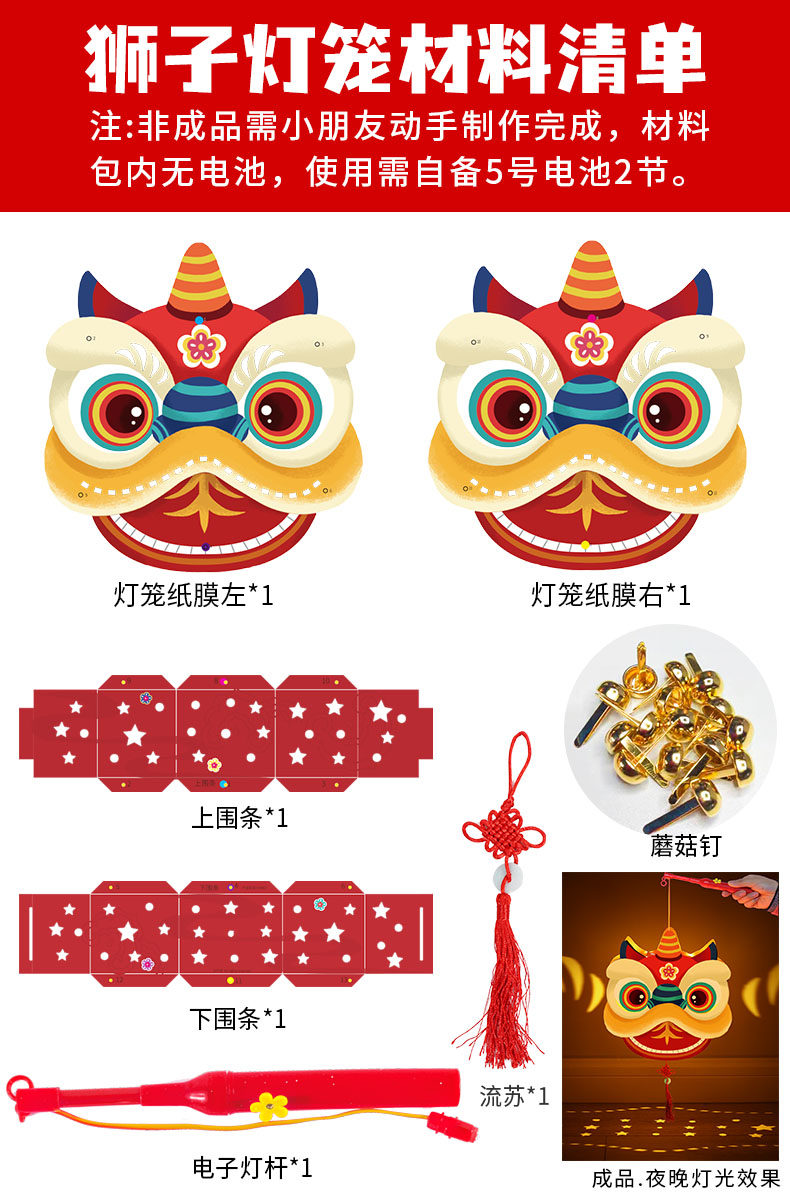 2026新年醒狮灯笼diy手工材料儿童幼儿园手提发光传统狮子花灯