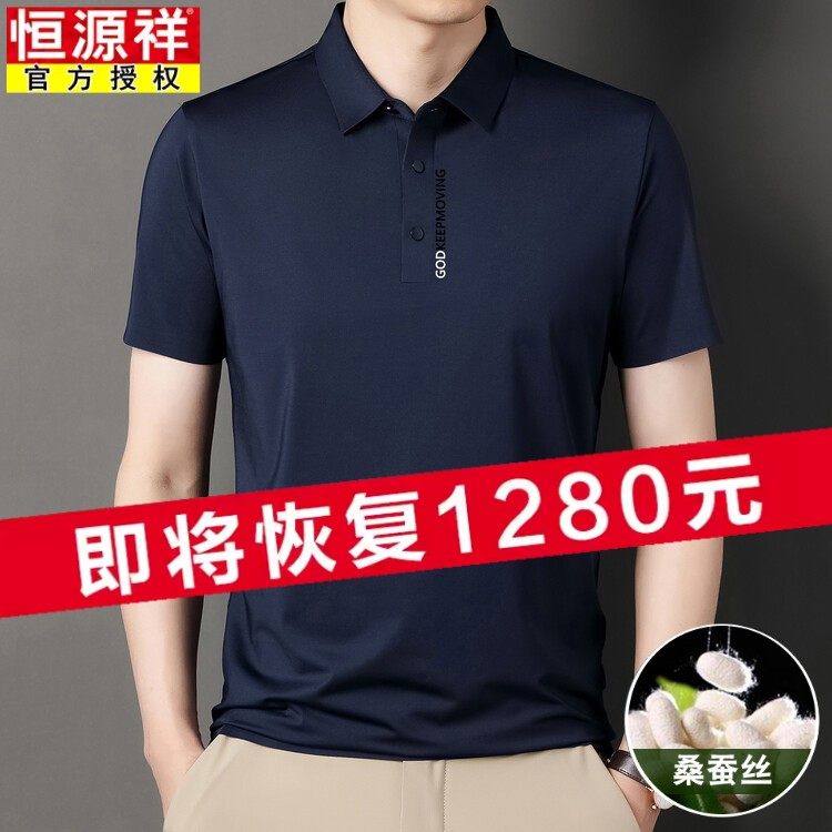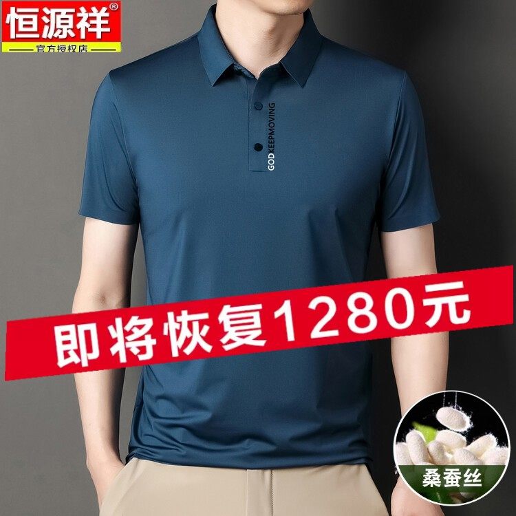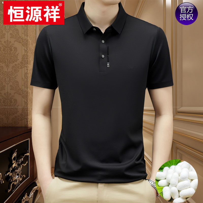 恒源祥男士夏季商务短袖T恤冰丝无痕翻领polo衫桑蚕丝中年半袖潮