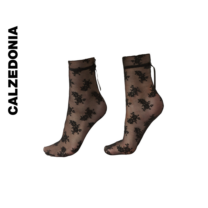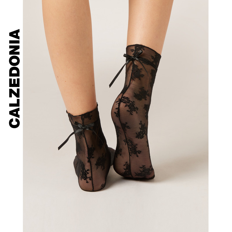 CALZEDONIA卡泽意袜女士时尚派对蕾丝网格蝴蝶结装饰短袜DCZ077