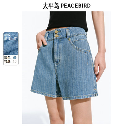 太平鸟高腰肌理牛仔中短裤2025年夏季新款A字宽松阔腿牛仔裤短裤