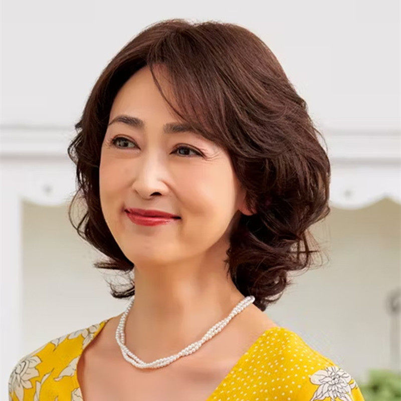 假发全头套女短发真发全真人发丝中老年女士卷发妈妈真头发套自然