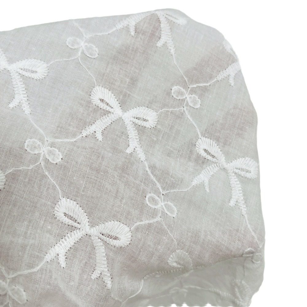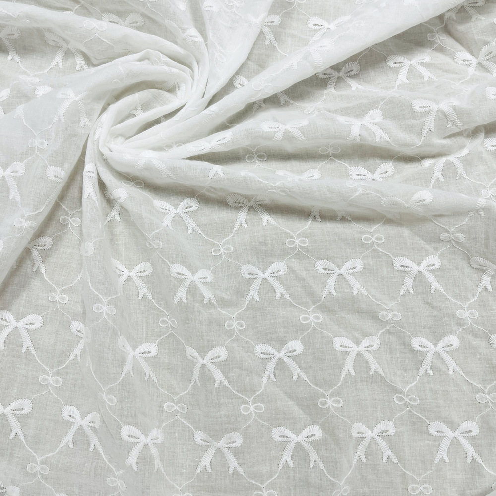 爆款蝴蝶结全棉刺绣蕾丝布料 纯白ins风连衣裙无打孔不镂空绣花布
