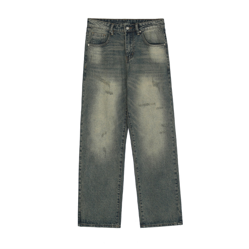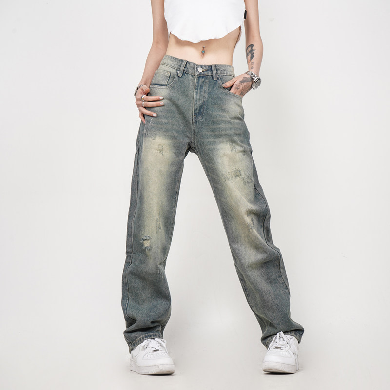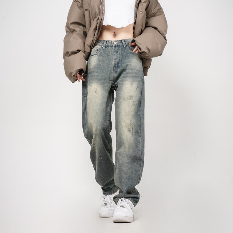 Z POCKET美式复古水洗破洞休闲宽松直筒牛仔裤垂感男女裤子秋冬