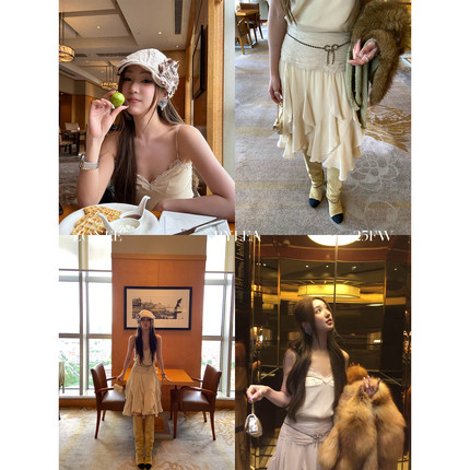 ZONEE/LEA宋亦雯 古早味千金 法式复古设计感吊带不规则半裙套装