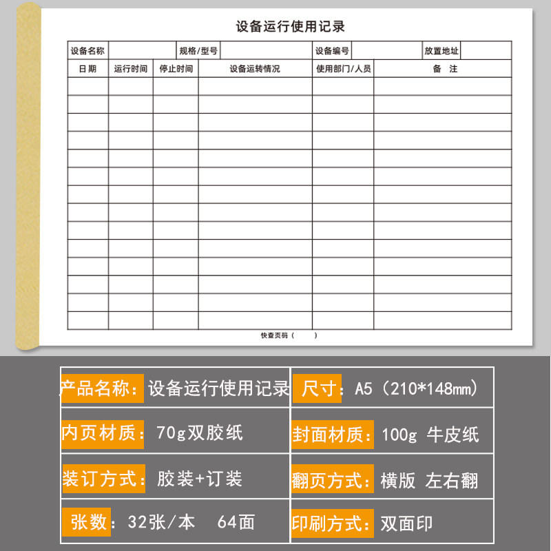 设备运行使用记录本A5可悬挂设备台账本设备维修保养记录本生产车间机器设备使用记录簿设备维修保养记录定制